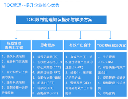 TOC是一套管理理念與管理工具的結(jié)合,它把企業(yè)在實(shí)現(xiàn)其目標(biāo)的過程中現(xiàn)存的或潛伏的制約因素稱為“約束”,通過逐個(gè)識(shí)別和消除這些約束,使得企業(yè)的改進(jìn)方向和改進(jìn)策略明確化,從而達(dá)到幫助企業(yè)更有效地實(shí)現(xiàn)其目標(biāo)的目的。通過建立與實(shí)施TOC管理模式,持續(xù)推進(jìn)與貫徹落實(shí)自主經(jīng)營(yíng)管理,促進(jìn)企業(yè)管理標(biāo)準(zhǔn)化、簡(jiǎn)單化、高效化,實(shí)現(xiàn)內(nèi)部管理的持續(xù)改善。在文化層面,尊重激勵(lì)員工發(fā)揮潛能,打造并維持持續(xù)改進(jìn)的文化;在人才培養(yǎng)層面,培養(yǎng)和提升員工技能,讓其成為員工成長(zhǎng)及交流的平臺(tái)。